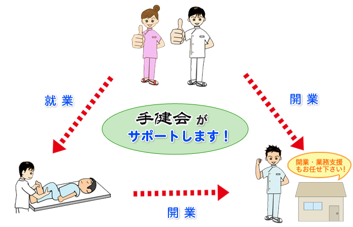 また、開業をご希望のあはき師の方には、開業のサポートから開業後の保険治療提出書類等の代行など、業務支援を手健会にて承っております。詳細は、「あはき師開業支援」をご参照下さい。